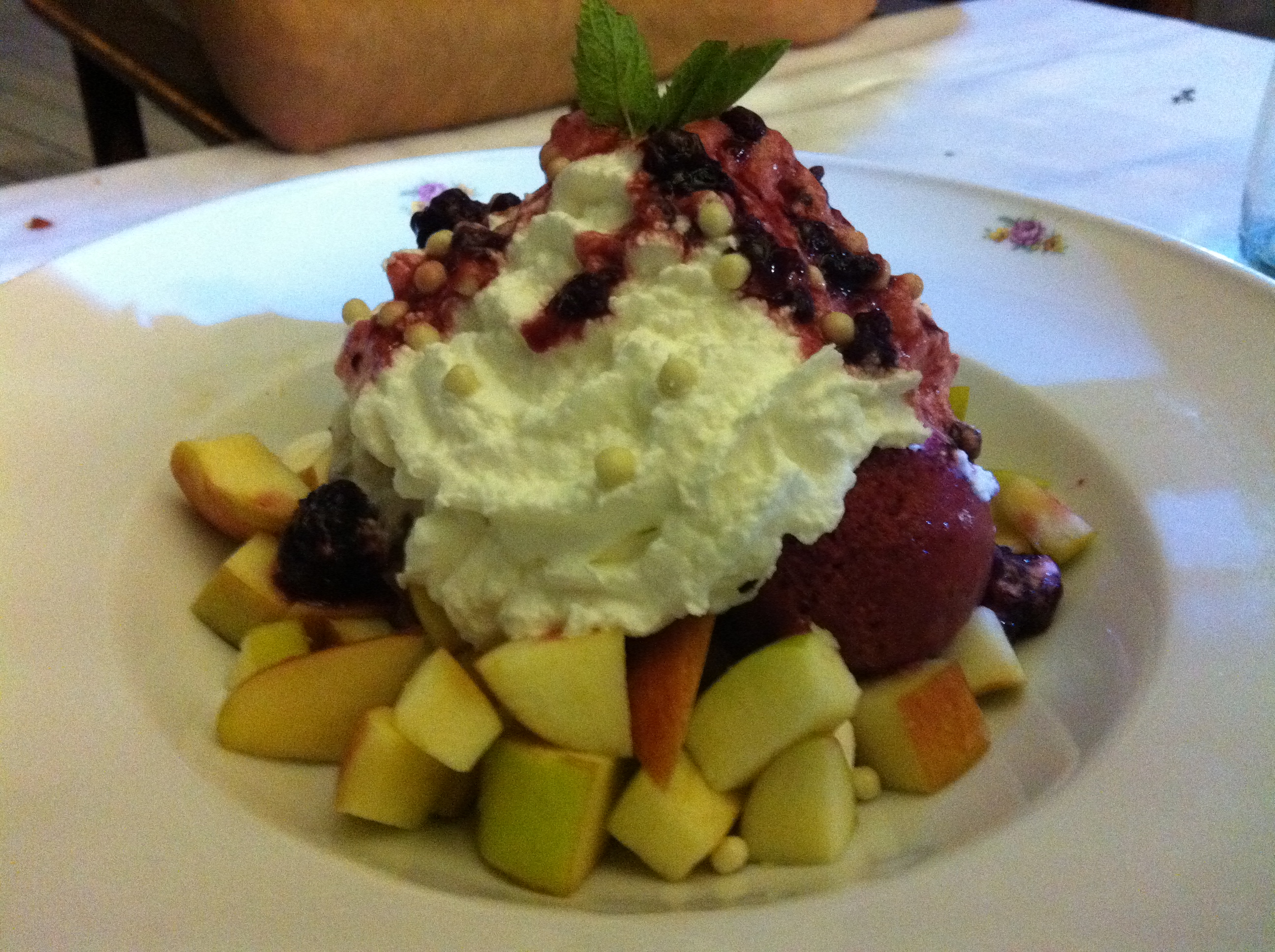 מהמנות שטעמתי, אהבתי במיוחד את כדורי הלאבנה, הכרובית ביוגורט, הסלמון בטאבון, וכמובן את הקינוח המצויין, שמכיל סלט פירות, שלושה כדורי גלידה (תוצרת וניליה), מרנג והמון קצפת.