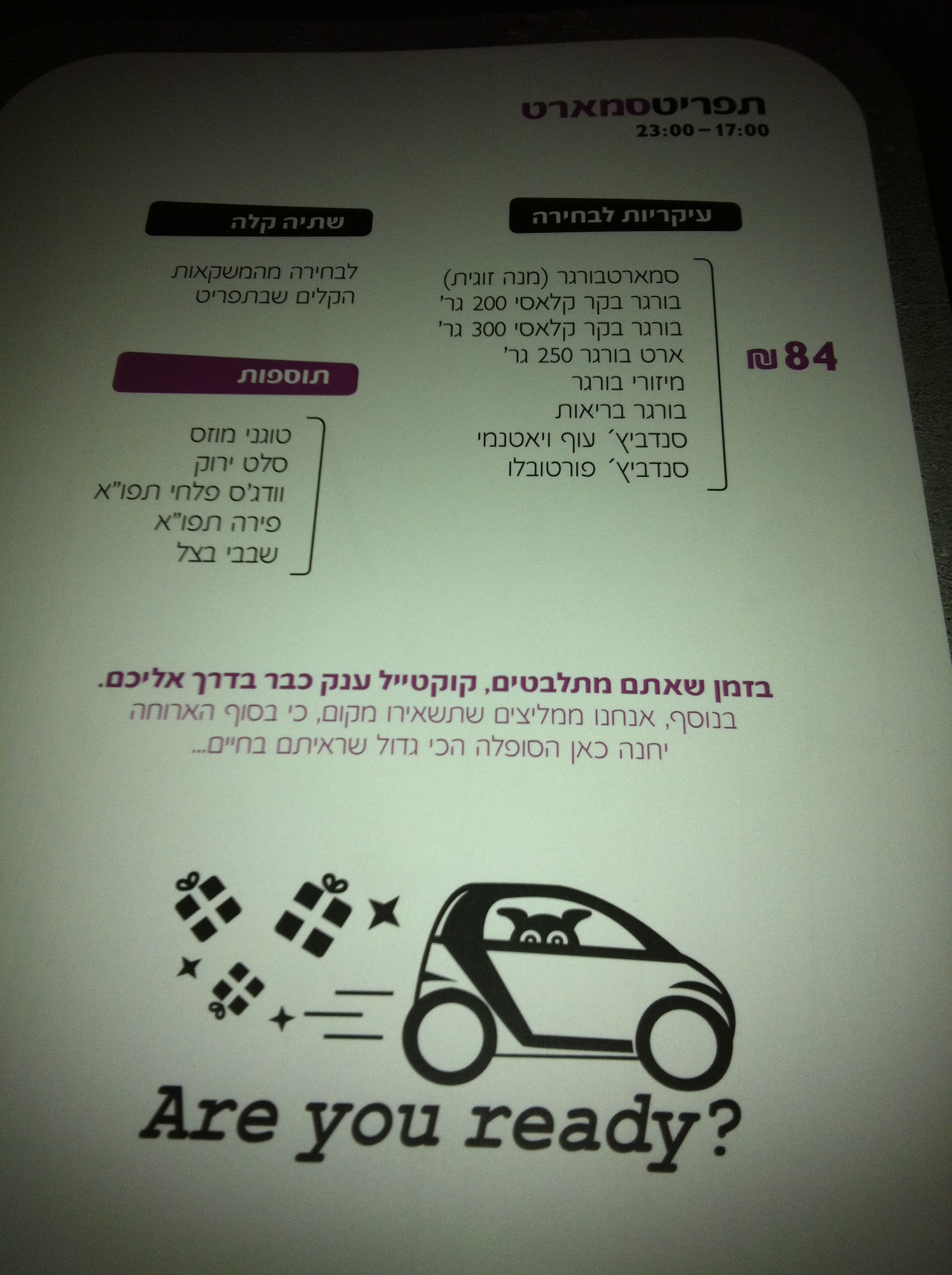 רשת ההמבורגרים המוצלחת חברה למותג הרכב סמארט וביחד השיקו את ה"אורבן פאן" – urban fun ובמסגרתו גם את "סמארט טאבל" – smart table ואת ה"סמארטבורגר" – smartburger.