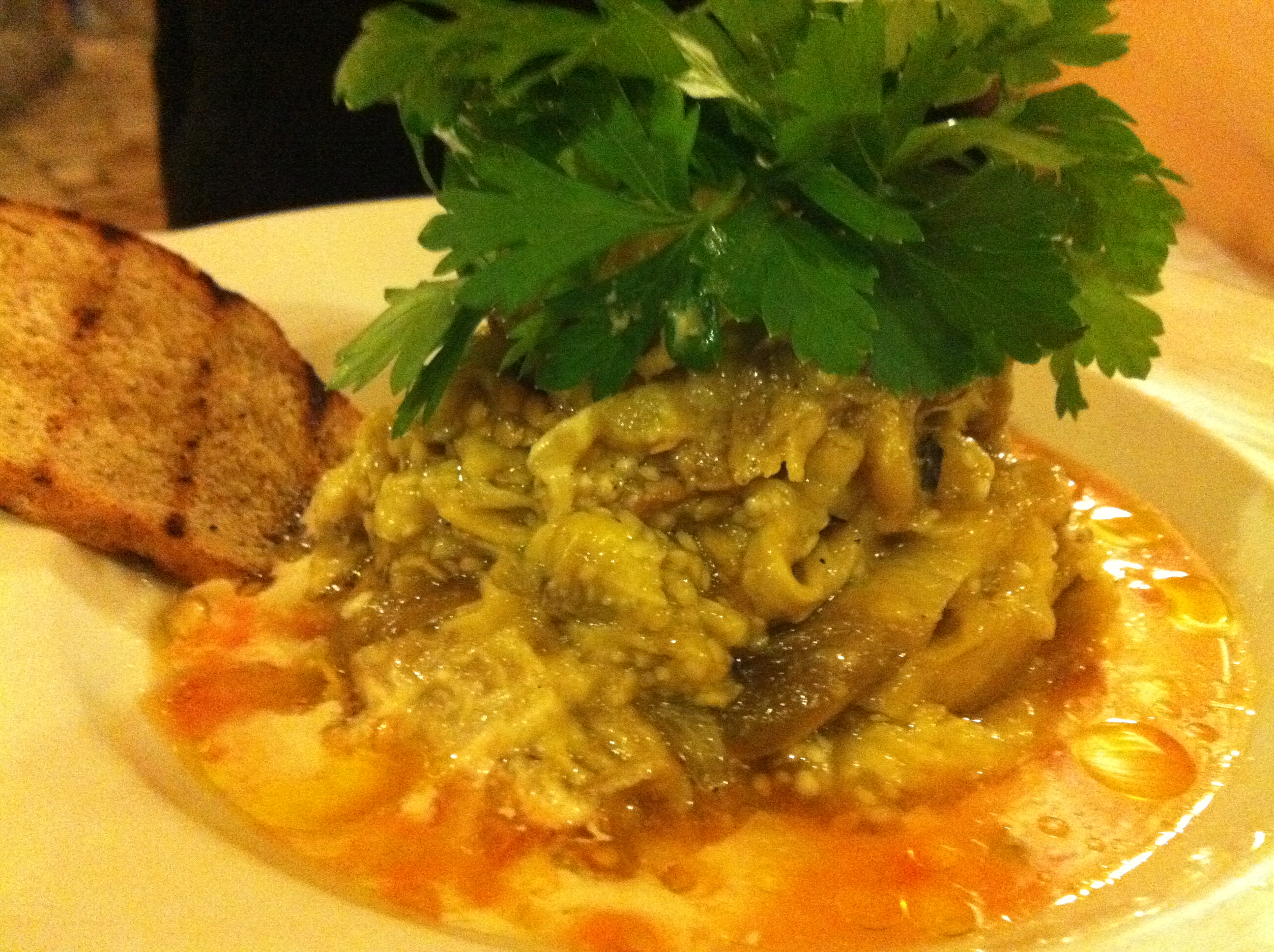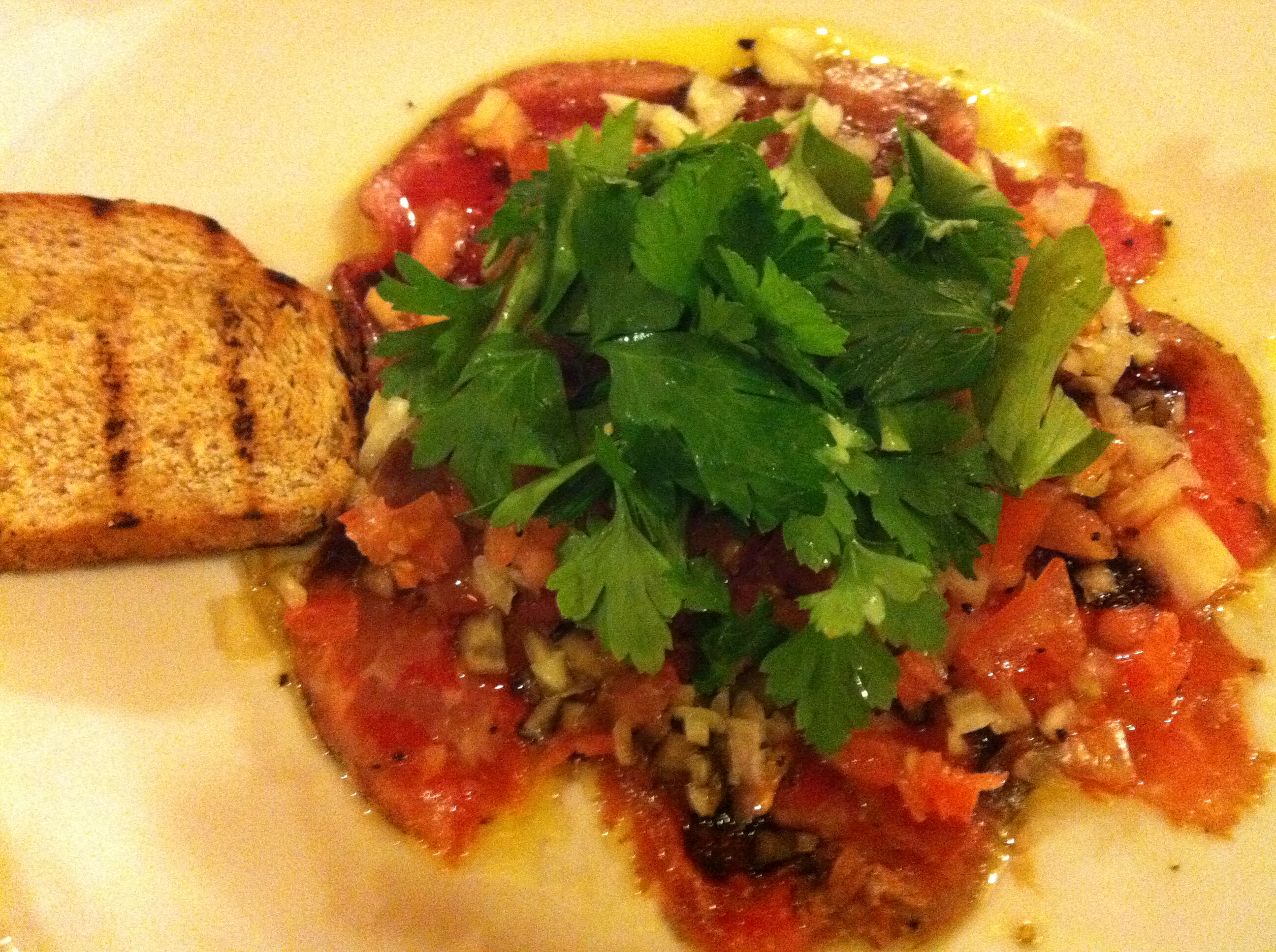 לראשונות: אני הזמנתי קרפצ'יו סינטה עם 'סלט ערבי' מעל – מצויין! וחברתי הזמינה חציל בטחינה, שמאוד התענגה עליו.
