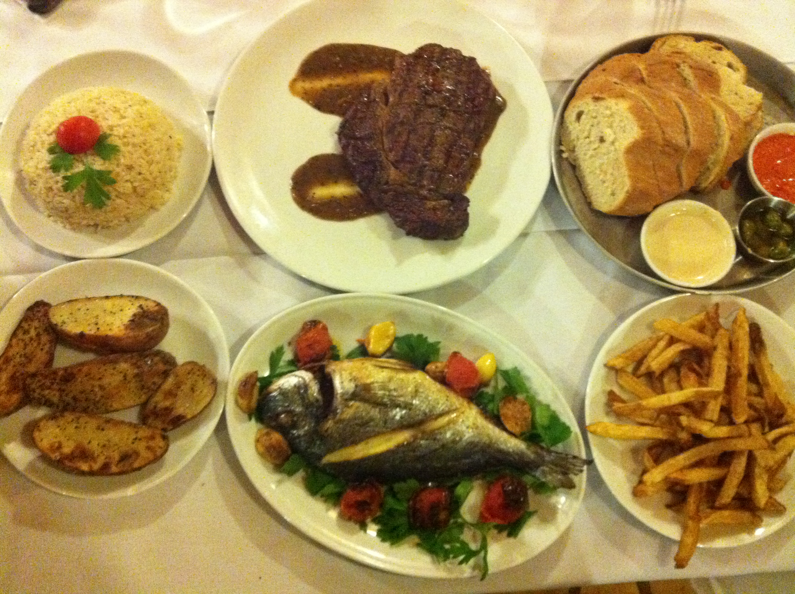 בעיקריות החלטנו להתחלק – הזמנו לשתינו דניס בגריל ואנטריקוט מדיום.