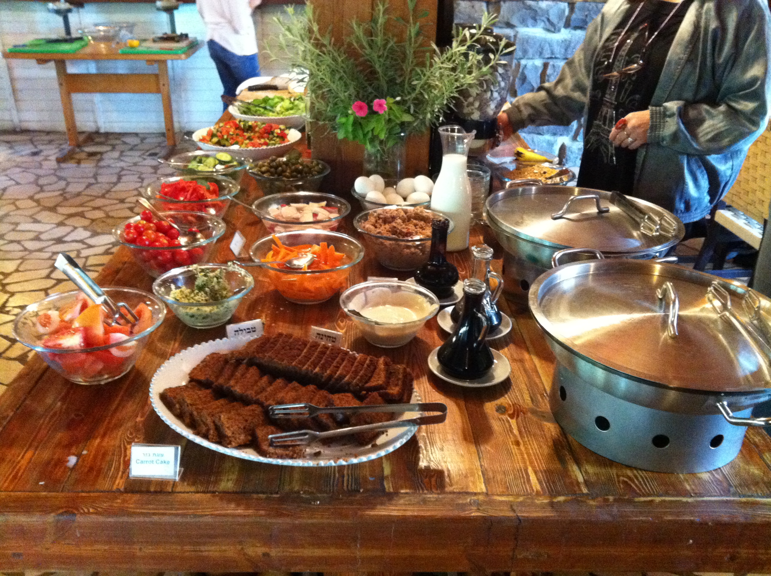 לחמים טריים, מבחר סלטים , גבינות, חביתות, עוגת גזר, מיץ תפוזים שסוחטים במקום, חלבה, שוקולד, ריבה…בקיצור כל מה שצריך בארוחת בוקר טעימה ובריאה!