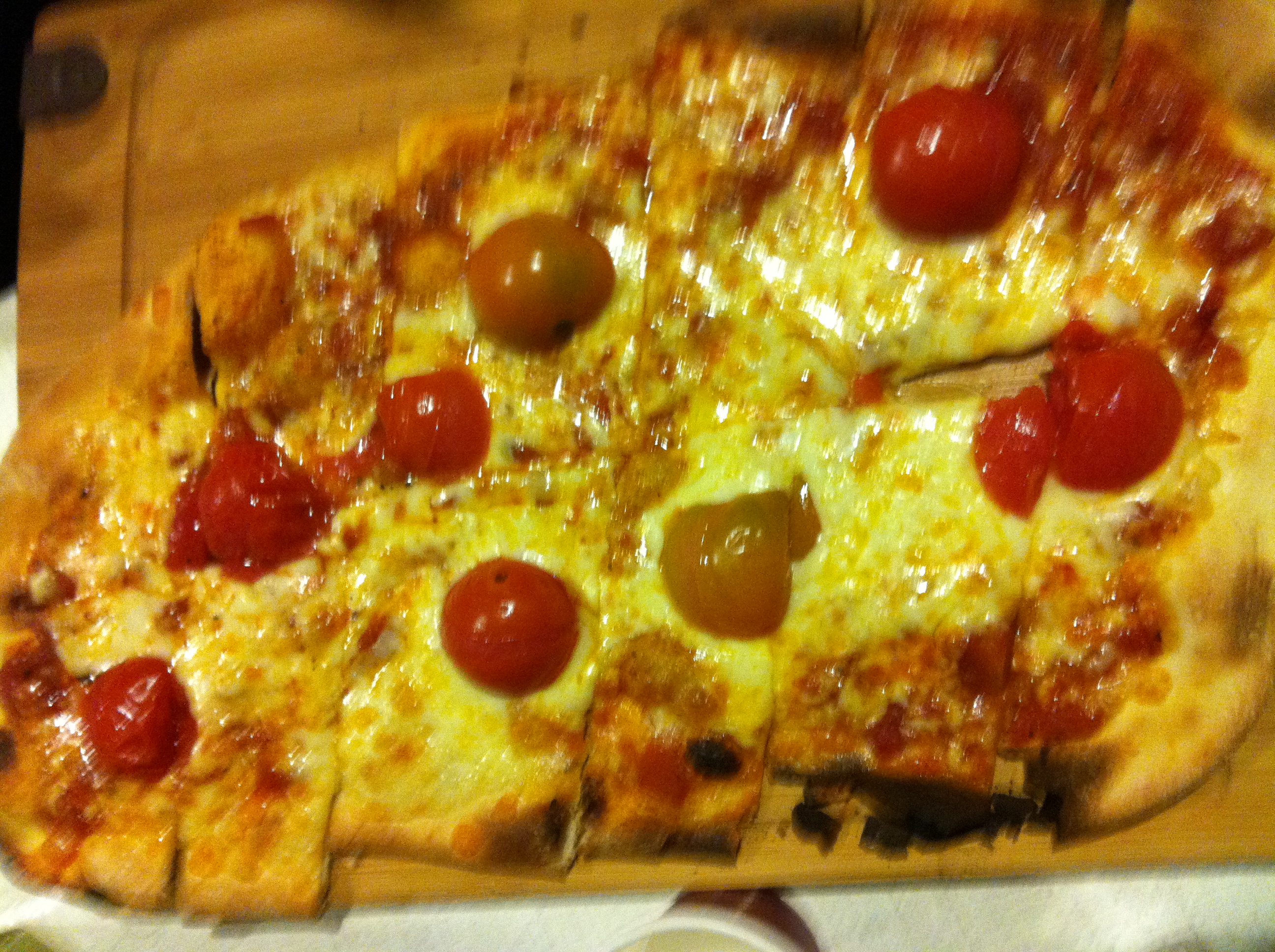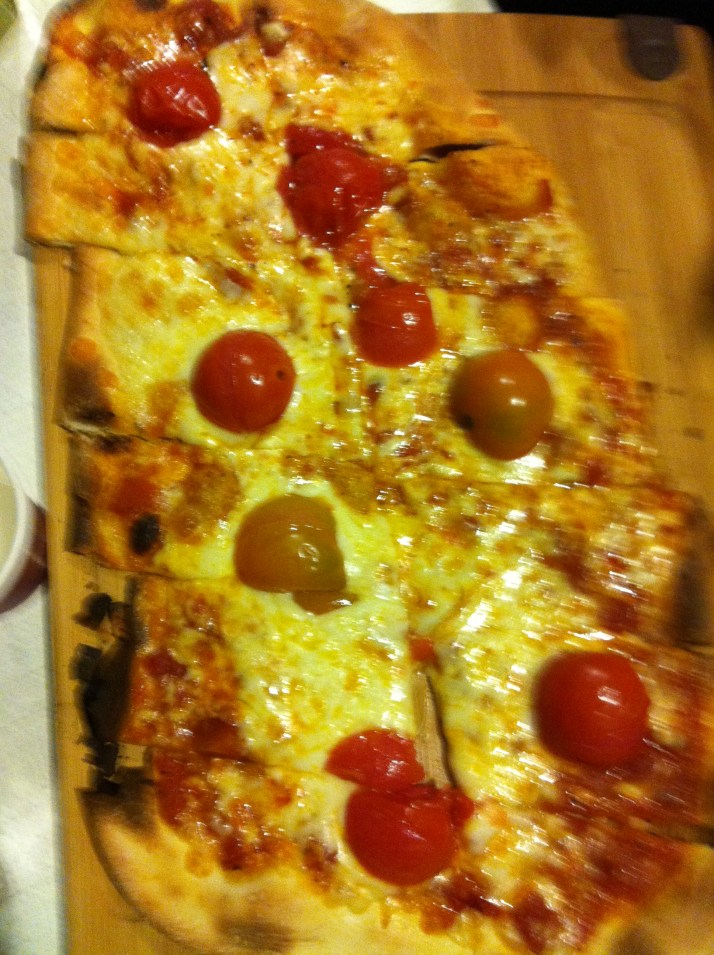 הוגשו כמה מגשי פיצה לכלל השולחן – הפיצה הייתה דקה, הרוטב היה טעים. בסה"כ פיצה טובה.