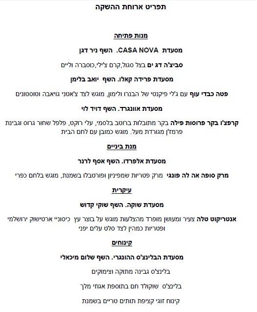 (15-25 לינואר פרטים מלאים ותפריטים באתר 'שף תאכל'  www.chef-tochal.co.il או בטלפון  03-6912540. )