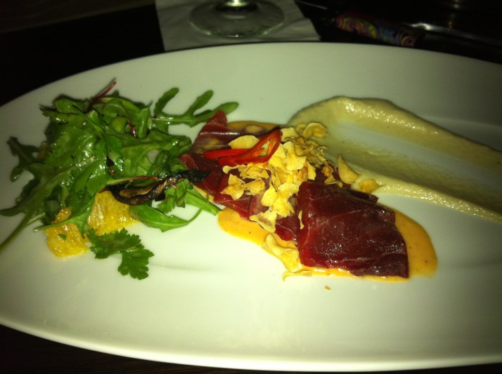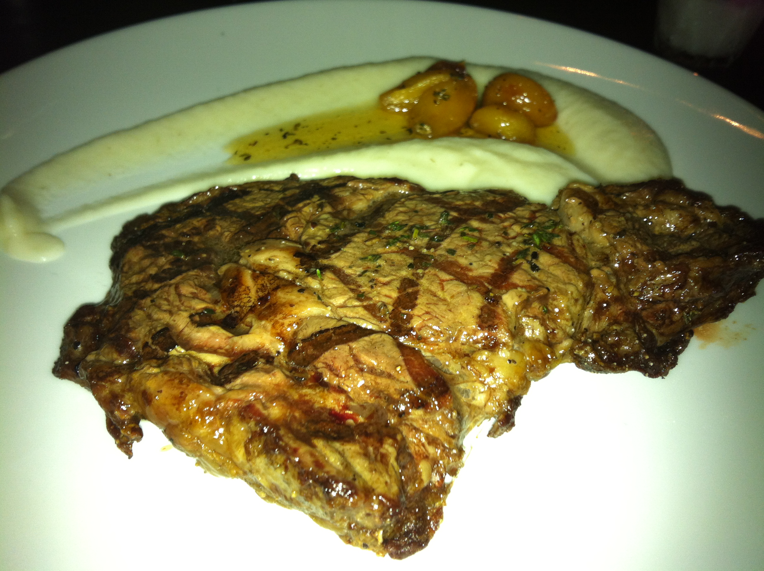 אנטריקוט (300 גר') על פירה ארטישוק ירושלמי ושום קונפי מתקתק – מנה מצויינת! בשר איכותי ועשוי במידה הנכונה. פירה הארטישוק היה קרמי ומענג.