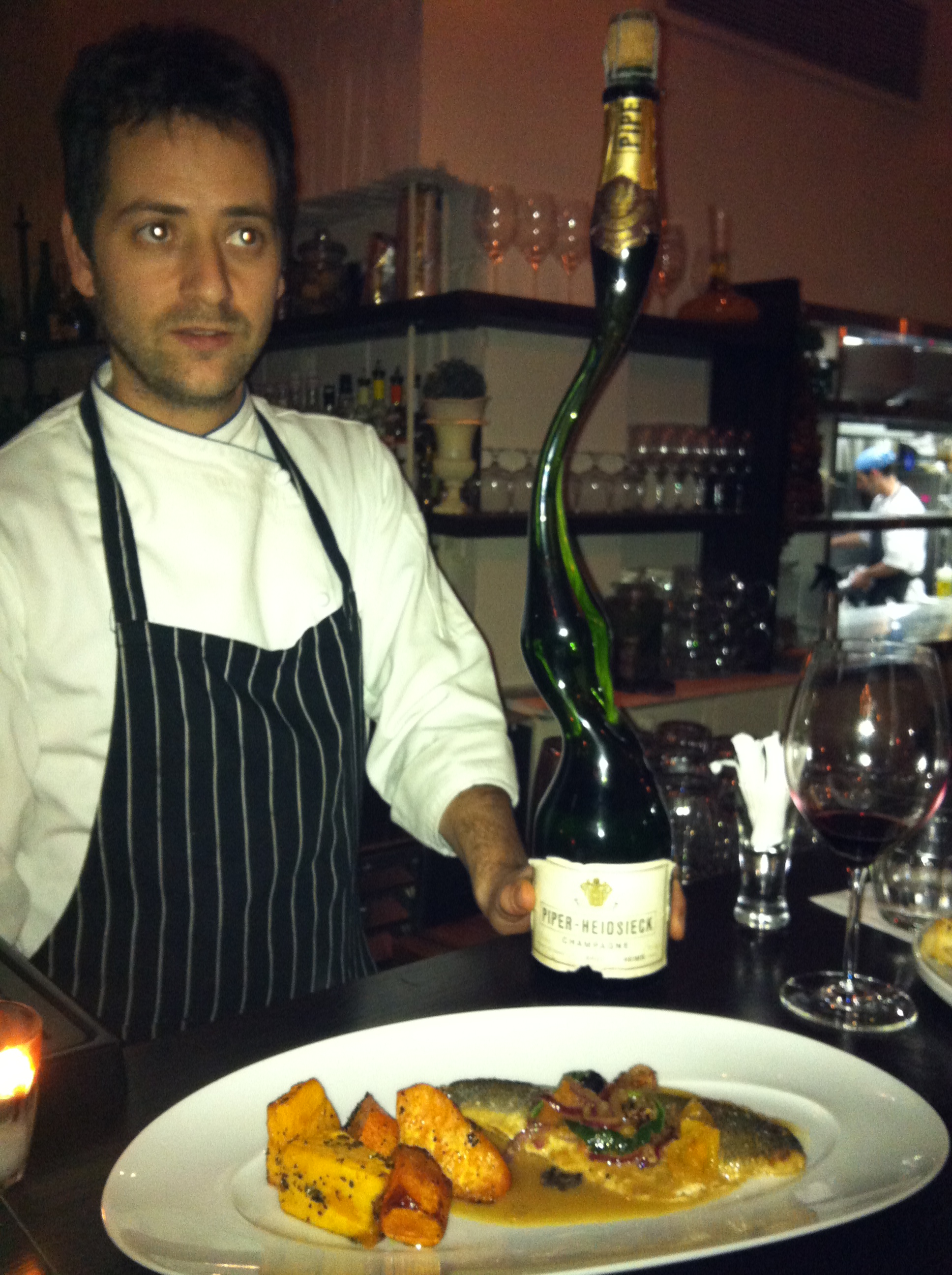 שימו לב לבקבוק המוזר שלצד השף 🙂 מדובר בשמפניה בת 30 שנה…(לראותה בלבד!)