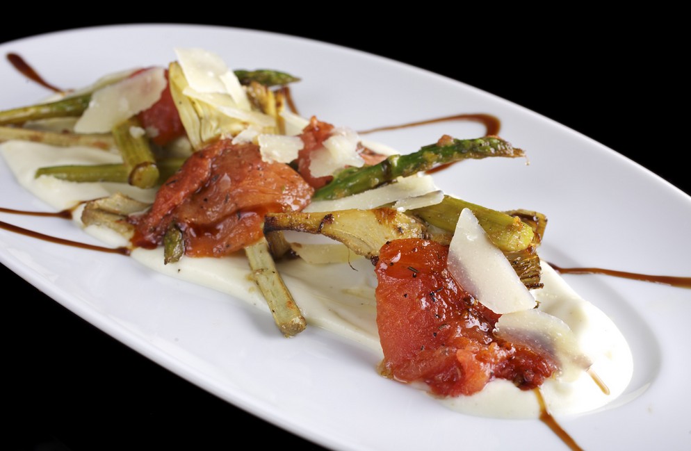 ארטישוק ואספרגוס על קרם שורשים ופרמזן – מנה מאוד מעניינת ומוצלחת לטעמי.