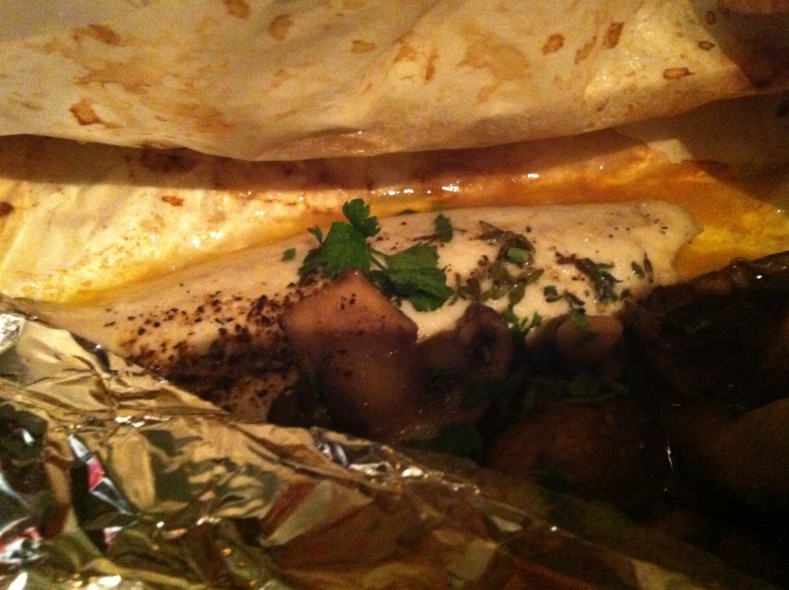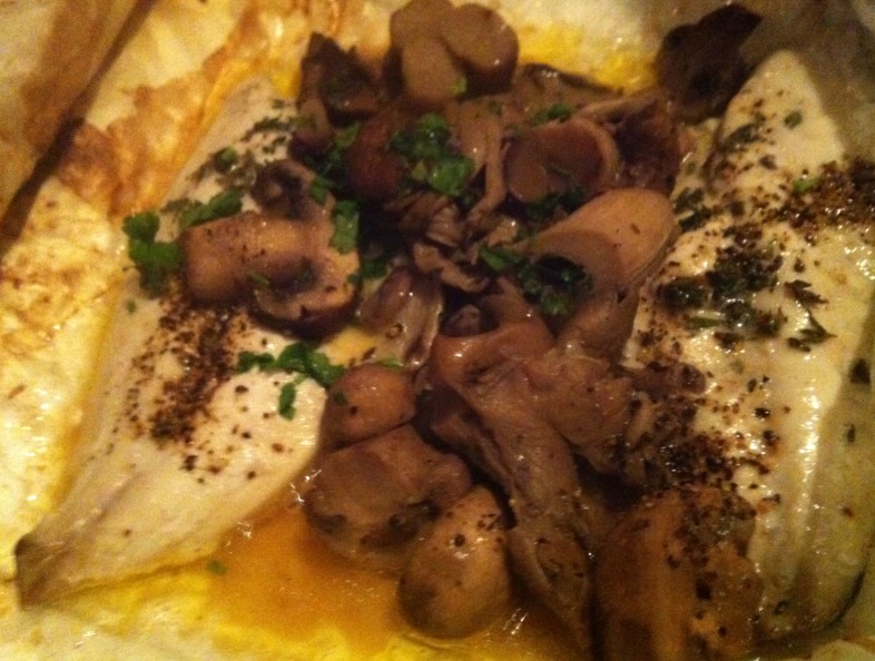 פילה דג ים עם פטריות ושמן כמהין – פילה דג ים מאודה בטאבון עצים, פטריות פורטובלו, פטרוזיליה, פטריות שמפיניון ושמן כמהין. גם פילה הדג היה מצויין. עשוי כמו שצריך ברוטב מושלם.