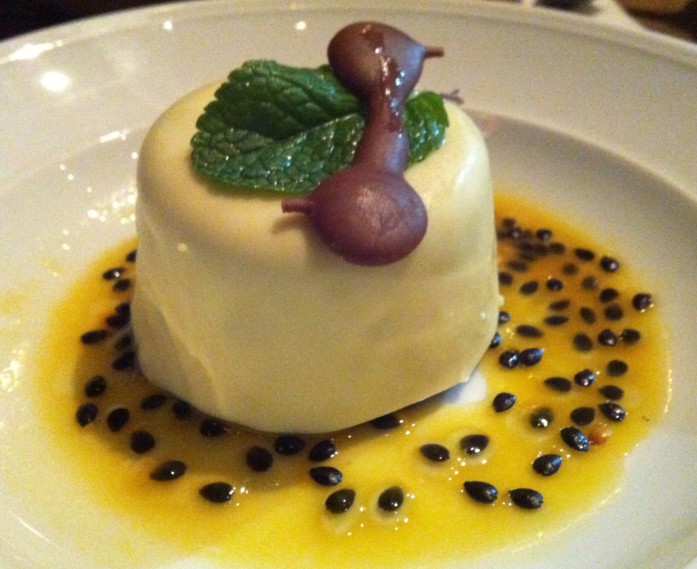 טרופ שוקולד – שוקולד מריר אפוי מצופה בשוקולד לבן ברוטב פסיפלורה. היה קצת קשה לשבור את השוקולד הלבן מסביב, כדי להגיע לשוקולד המשובח שמסתתר בפנים.