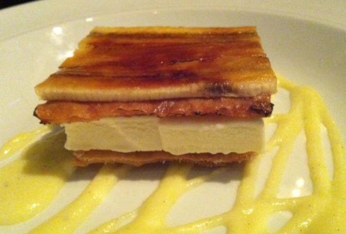 דולצ'ה בננה – מוס שוקולד לבן בדפי בצק פילו עם שבבי קשיו ובננה מקורמלת. לקינוח הזה באתי עם ציפיה גדולה והוא השאיר אותי עם אכזבה קלה.