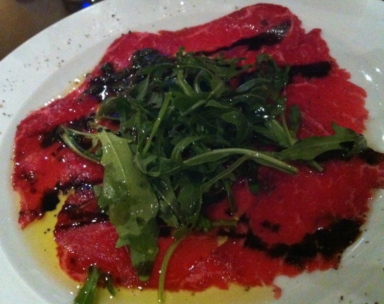 קרפצ'יו סינטה עם שמן זית ופסטו.
