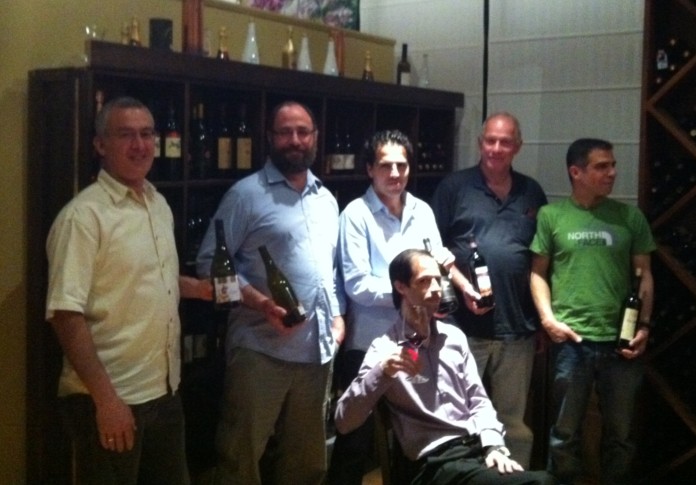בתמונה: יוסי בן אודיס, סומלייה ובעלים של הטרקלין ומאחוריו הייננים שהנעימו לנו את הערב.