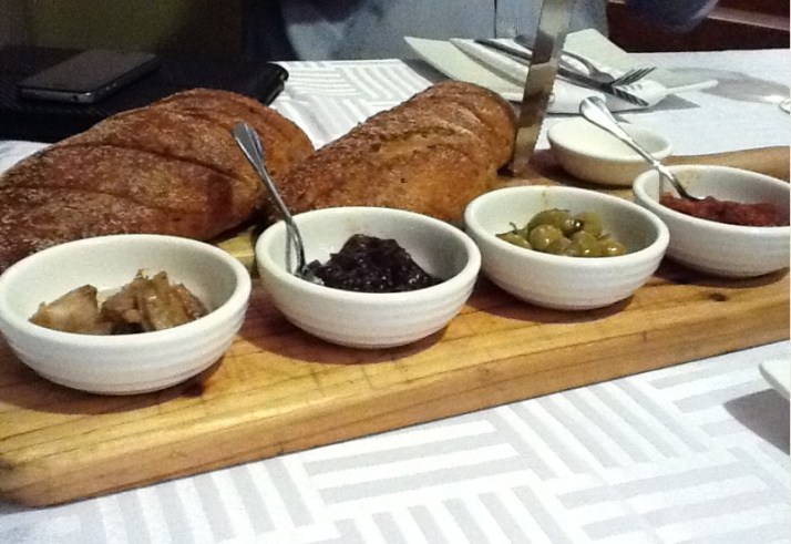 לחם ומתבלים תחילה – לחם דגנים וסולת טעים מאוד שנעשה במקום, מוגש עם זיתים ירוקים, מטבוחה, ריבת בצל וקונפי שום נהדר.
