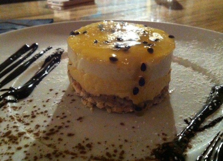מוס שוקולד לבן עם קרם פטיסייאר ופסיפלורה. קינוח מצוין, מתוק בדיוק במידה. במרקם הנכון בזמן הנכון 🙂