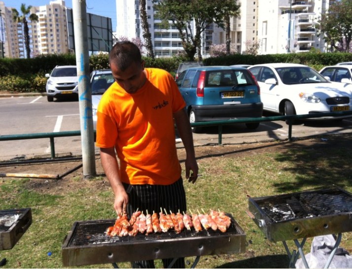 בשעת הצהרים הגיע המון בשר ואלי פינסלר, השף הראשי של אגאדיר, יחד עם עוד כמה טבחים מיומנים מהרשת הכינו לכולם על'אש.