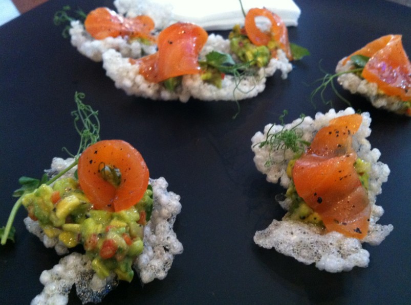 - קריספי טפיוקה מוגש עם גואקמולי וסשימי דג ים.