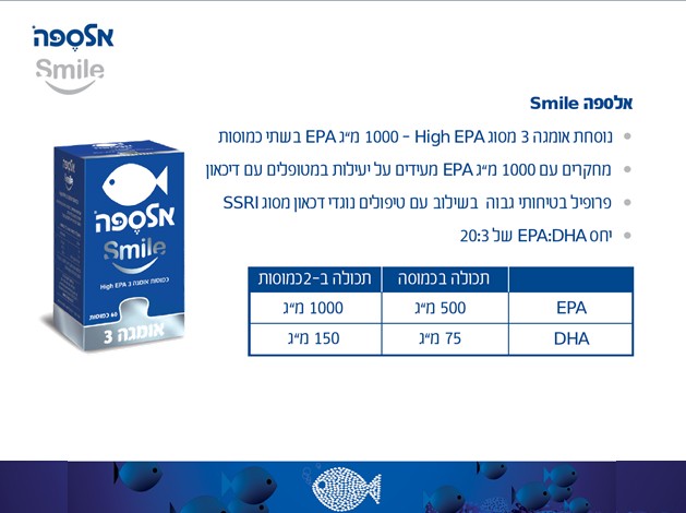כמוסות אומגה 3 – אלספה Smile עתירות EPA- מסייעות לבריאות הנפש ולמצב הרוח, כך מצהירים בפנינו.