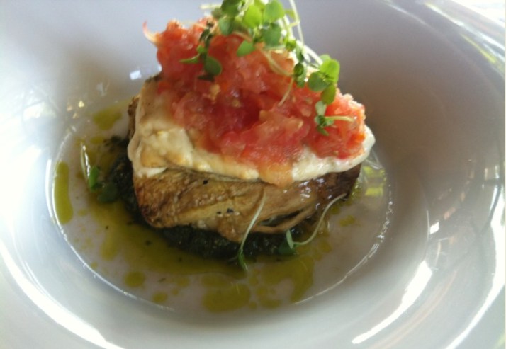 רול עגל מתקתק (בשר עגל טחון במעטפת פילו, תאנים מיובשות ותבלינים מתוקים, על קרם תפוחי אדמה וקוקוס, בטחינה גולמית, סילאן ואבקת סוכר), פילה חציל (החלק הבשרני של חציל קלוי על הגריל, מעליו גבינת בלו בוואריה ולב של עגבניה), ארטישוק צעיר ומוצרלה באפלו (ארטישוק איטלקי, עגבניות שטח ומוצרלה באפלו, בפונדו קומבוזולה) וסלט חווה (עלי חסה, תפוחי גרנד סמיט, אגוזי פקאן וקשיו קלויים, תפוח עץ מיובש, בוינגרט חומץ פטל תוצרת הבית, מוגש בתוספת קרוקטים של גבינת עיזים).