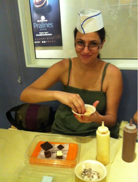 סיור קצר במפעל ואז לסדנה. קיבלנו חומרי גלם והפכנו אותם לפרלינים מלבבים 🙂