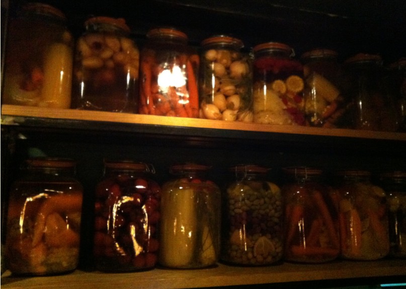 במרכז בר גדול, מסביב שולחנות עץ, את הקירות מעטרים בקבוקי יין, חמוצים תוצרת בית ותמציות "לימונצ'לו" בטעמים שונים שנעשות במקום.