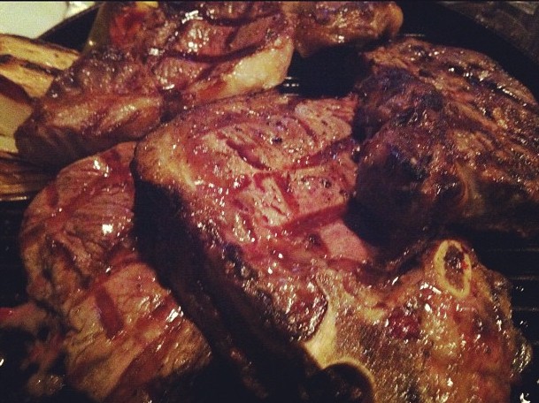 פלטת בשר המכילה: אנטריקוט, פילה וטי-בון.