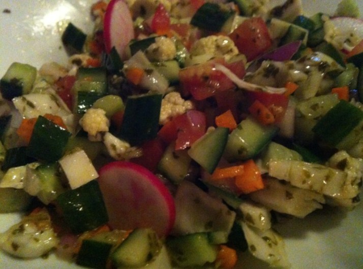 סלט קיבוץ – מלפפון, עגבניה, גזר, קולורבי, כרוב, בצל סגול, כרובית, צנונית ברוטב וינגרט עשבי תיבול (33)