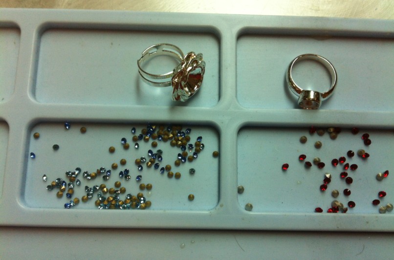 השלב הבא היה לבחור את אבני הסברובסקי שברצוננו לשבץ בטבעת – האבנים מגיעות במבחר רחב של צבעים וגדלים.