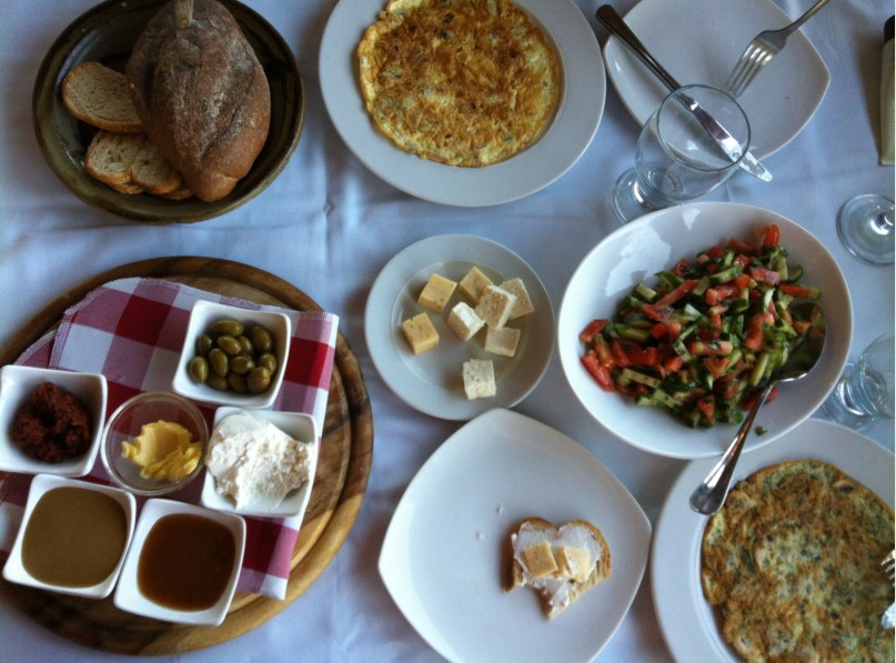 אומלט עם תוספות, סלט ירקות, גבינות, מטבלים, לחם טרי, מיץ תפוזים/לימונדה ושתיה חמה. ארוחת בוקר מפנקת!