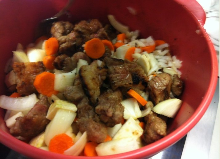 מנמיכים את האש ומבשלים למשך שעתיים (עד שהבשר מתרכך) מכוסה על אש קטנה מאד