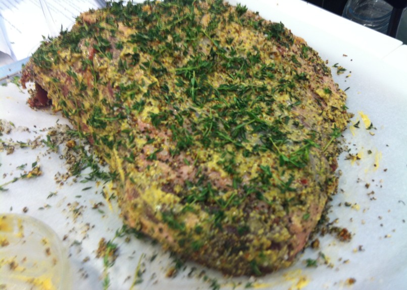 - מתבלים את הנתח במלח ופלפל ומורחים בחרדל