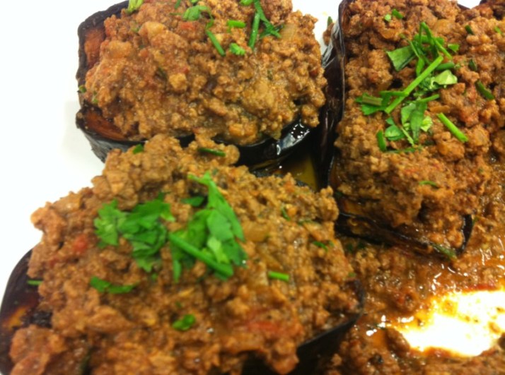 - חורצים את בשר החציל שתי וערב (כמו מנגו)