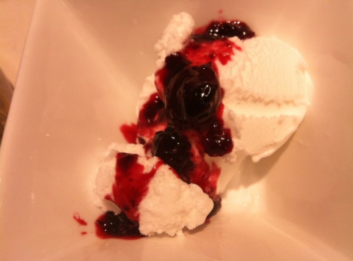 יוצקים את הרוטב על הסורבה ומעטרים בסוכר נענע (טוחנים סוכר ונענע סמוך ככל האפשר למועד ההגשה)