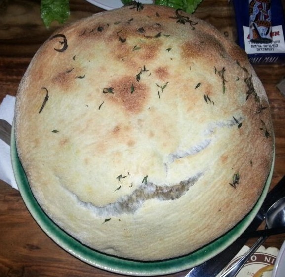 קדרת המושבה – תבשיל של קציצות בציר יין וירקות עטוף בבצק פוקאצ'ה פריך ומוגש עם סלט ירוק.