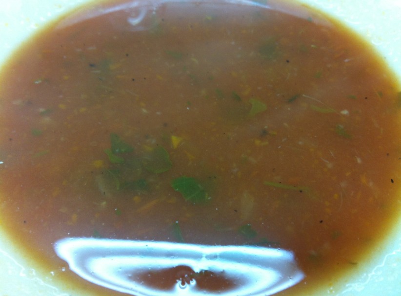 מרק עגבניות, אנטיפסטי ירקות קלויים בתנור, פוקאצ'ה עם רוזמרין, ריזוטו, עוגת טירמיסו עם גבינת מסקרפונה.