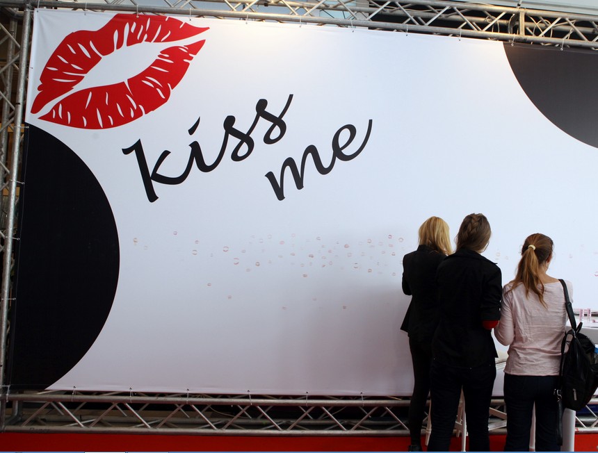בכניסה הראשית ל Beauty mall יוצב קיר הנשיקות הגדול בישראל – כל מבקרת במתחם , תקבל שפתון במתנה, אותו תוכל למרוח על שפתיה, ולהטביען על קיר הנשיקות , בצירוף חתימתה. כל מבקרת אשר תטביע את שפתיה על קיר הנשיקות, תקבל במקום הנחה לרכישת שפתון.