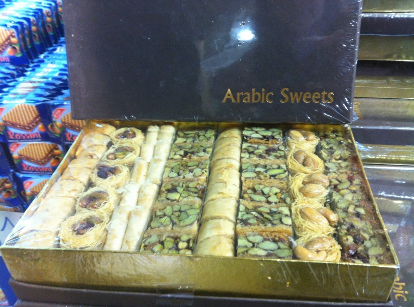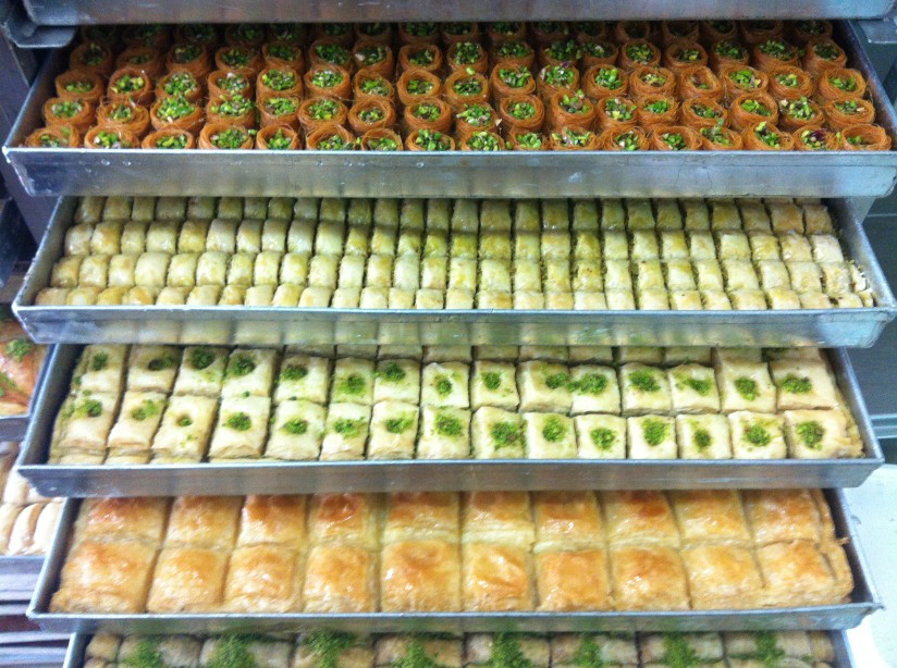 מבחר עשיר של בקלאוות, כנאפה ועוגיות מסורתיות אחרות.