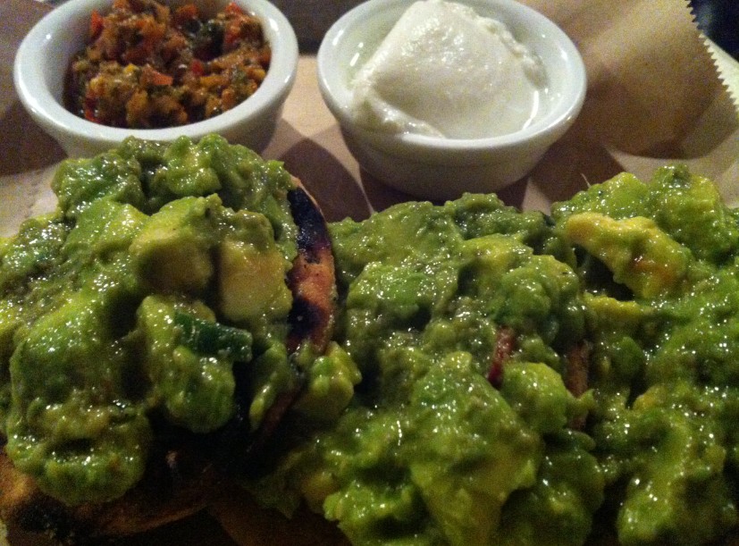 פנג'בי – לחם מש עם גוואקמולי וסלסה חריפה. מנה קלילה ומוצלחת.