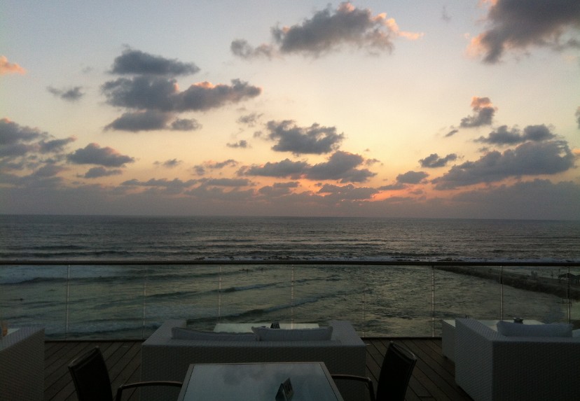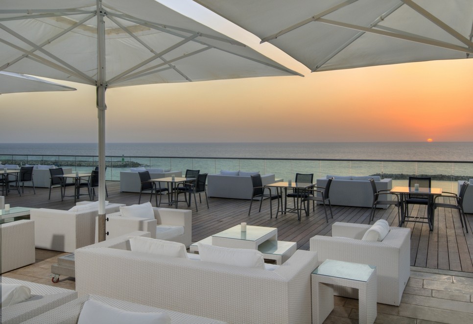 המרפסת של לובי מלון הילטון היא ללא ספק אחד המקומות הנעימים לשבת בהם בערב קיץ, לצפות בשקיעה על הים וליהנות מבריזה נעימה.