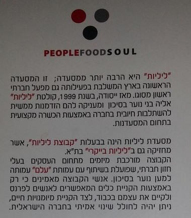 על הפרוייקט של מסעדת ליליות שמעתי בטרם הוזמנתי לאכול שם, כך שהם זכו לנקודות זכות ממני מראש.