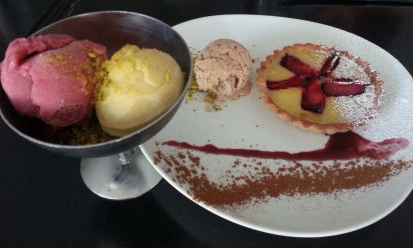 פאי לימון לחובבי הז'אנר, סופלה שוקולד מצויין, מקרונים וסורבה תות-מנגו מרענן.