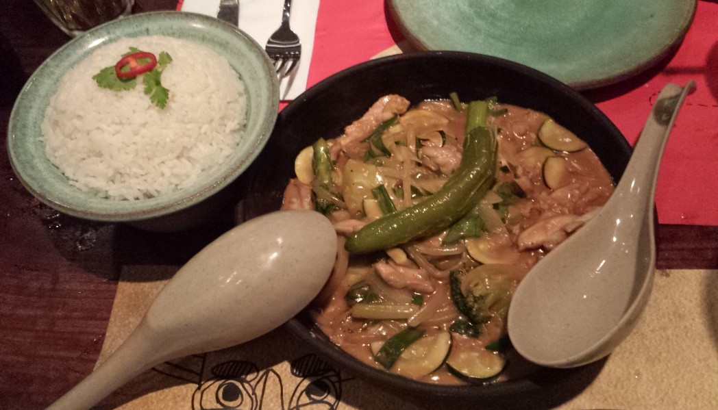 ה-מנה של הערב מבחינתי היתה המנה הזאת: Green Garden – אטריות אורז עם נתחי עוף צלויים, ברוקולי, זוקיני, בייבי תרד, פלפל ירוק, בצל ירוק, ברוטב בזיליקום, קארי ירוק וחלב קוקוס. מעדן!