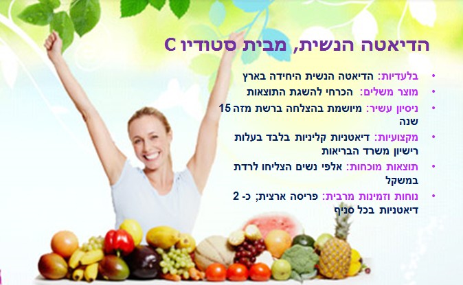 סדנת "דיאטה נשית" – דיאטה ייחודית המותאמת לנשים 12 מפגשים אישיים עם דיאטנית קלינית.
