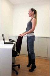 עמדת מוצא : עמדי בפיסוק קל מול כסא או שולחן, כשהרגליים מקבילות והבטן אסופה.