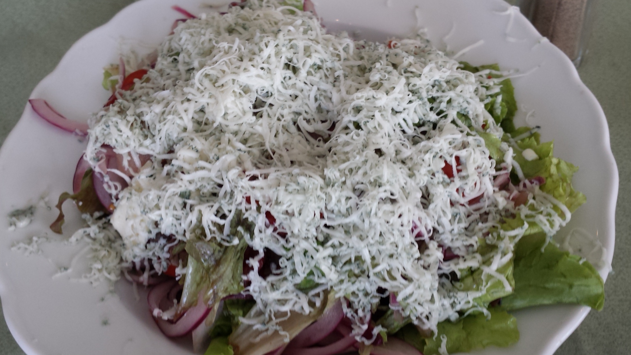 · סלט אגס שיכור במיקס חסות, עגבניות, חמוציות, צנון, בצל וגבינת רוקפור. ברוטב דבש ולימון – מצוין.