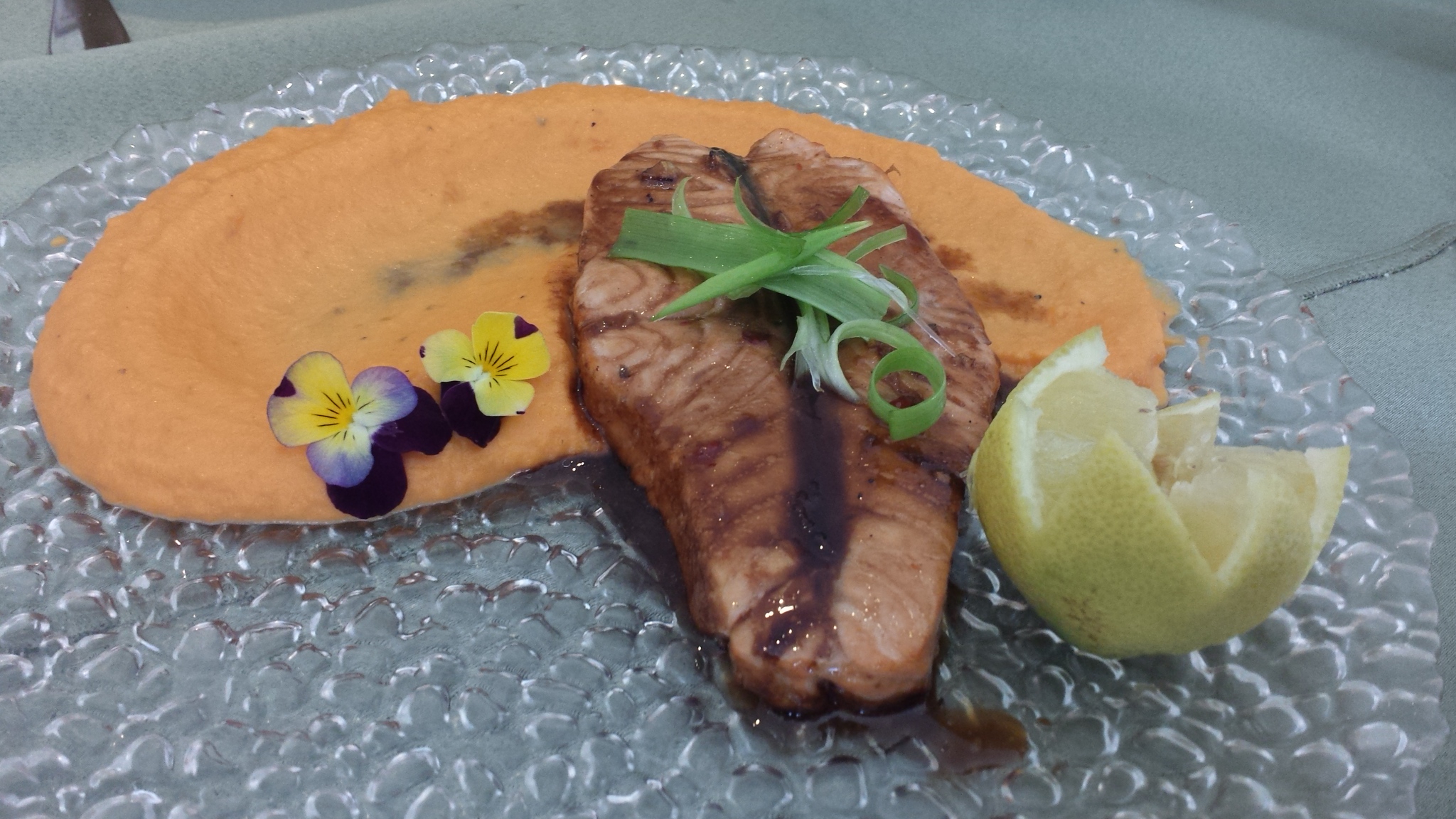 · אסקלופ סלמון 200 גר' ברוטב אסייאתי מתקתק על קרם בטטה – שוב הסלמון הרגיש טרי ונימוח וקרם הבטטה היה מעדן.