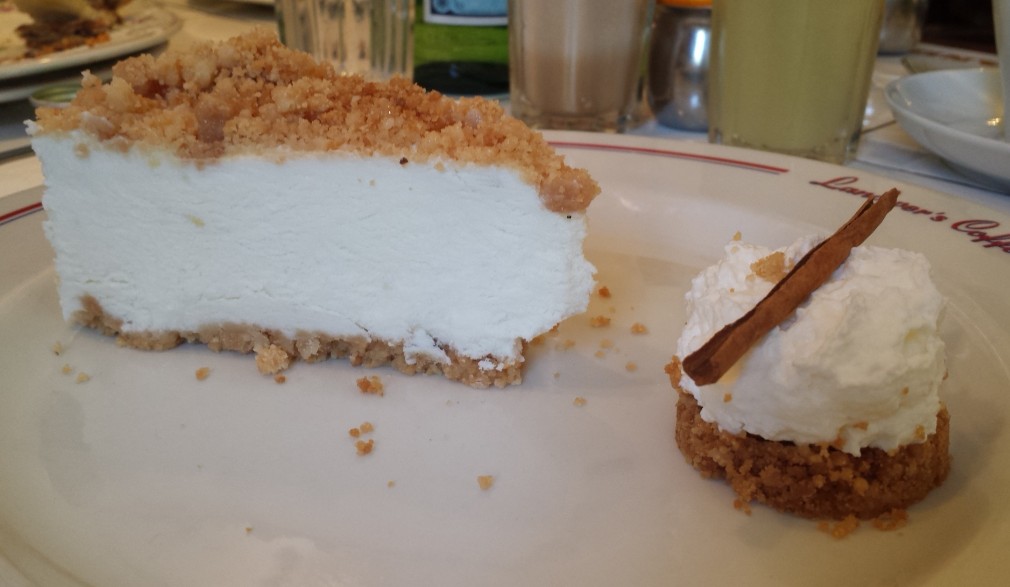 - עוגת גבינה אפויה – עוגה קלאסית בעלת מרקם אוורירי וקרמי, עם שכבת ציפוי של שמנת וגרידת לימון. לצד העוגה מוגש רוטב פירות יער. מחיר – 38 ₪.