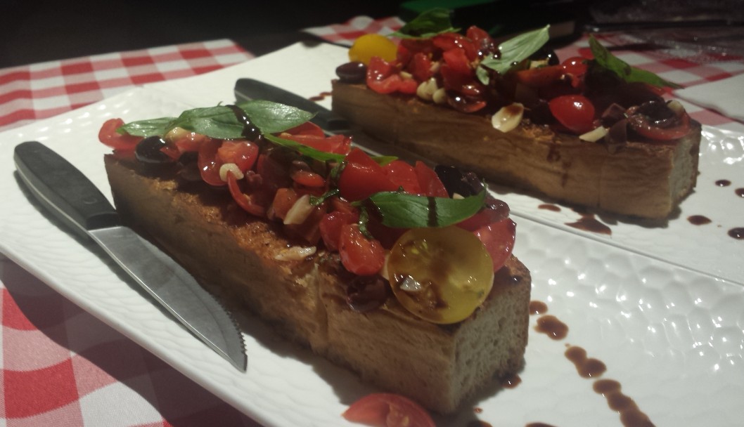 ברוסקטה קלאסית – עגבניות, זיתי קלמטה, שמן זית, חומץ בלסמי, בזיליקום (32 ₪). לדעתי הברוסקטה היתה עבה ואוורירית מדי.