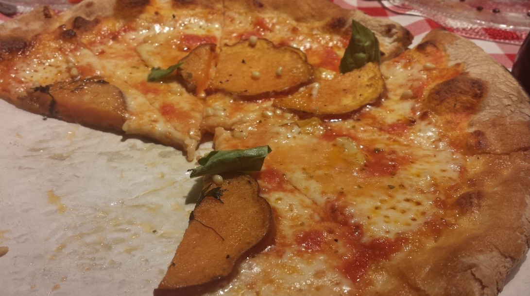 פיצה בטטה עיזים – רוטב עגבניות, מוצרלה, בטטה צלויה, גבינת עיזים, בזיליקום, צנוברים (58 ₪). אישית, לא מתה על בטטות, אבל את כל שאר המרכיבים בפיצה אהבתי.