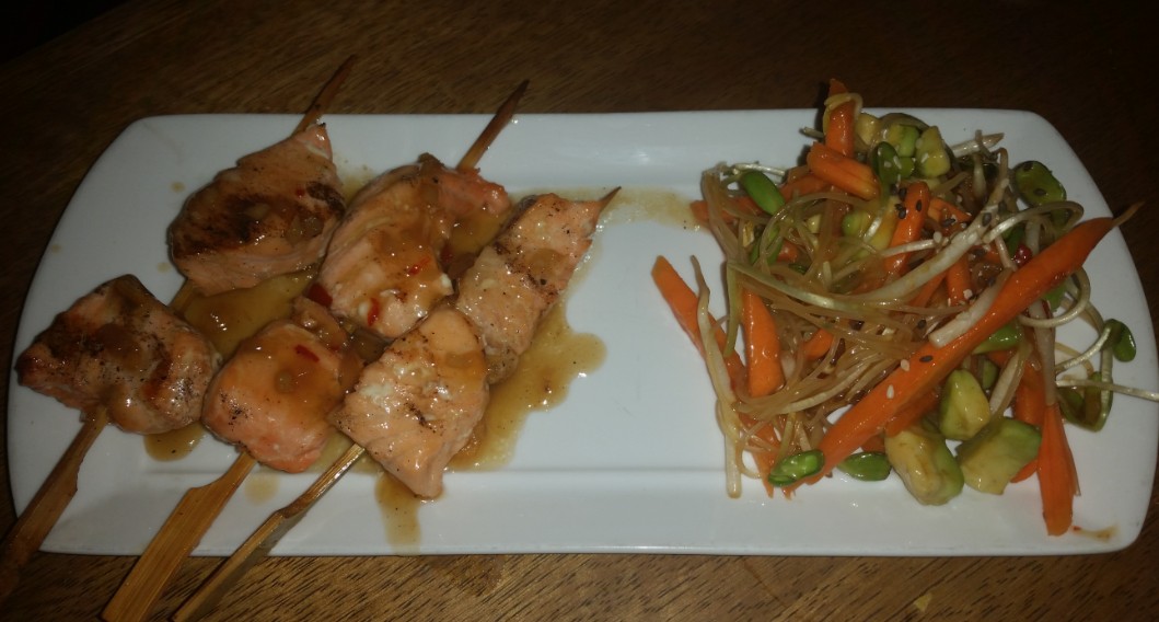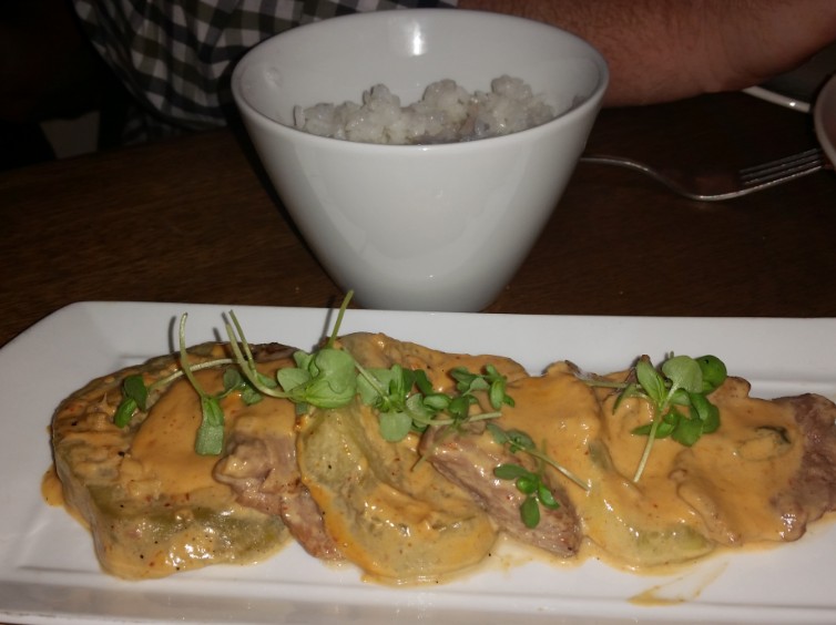 פילה בקר וחצילים מאודים, עם סטיקי רייס.