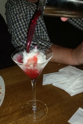 הקוקטייל הבא שבחרתי לטעום, בעל גימיק נחמד, מכיל "שערות סבתא", ומעל שופכים את קוקטייל התותים. לחובבי המתוק (כמוני!).