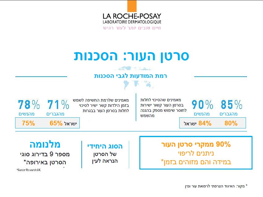 מחקר בלעדי שנערך על ידי חברת Ipsos עבור מותג הדרמו-קוסמטיקה La Roche-Posay ב- 23 מדינות ברחבי העולם, הכולל כ- 20 אלף נסקרים בטווח גילאים רחב, בדק את הגישות השונות לגבי החשיפה לשמש ואת רמת הידע הכללי של הציבור אודות הסיכונים הקשורים בחשיפה לשמש. ממחקר זה עלה שהרוב המכריע של הנשאלים – 88% – מודע לסיכונים להתפתחות סרטן העור כאשר נחשפים לשמש ללא הגנה.